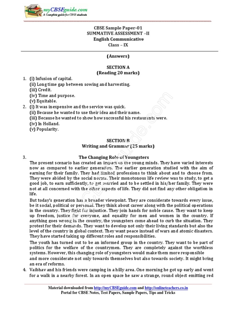 2016 09 English Communicative Sample Paper Sa2 01 Ans Uw48 - Here all questions are solved with detailed explanation and available for free to check mycbseguide.com.